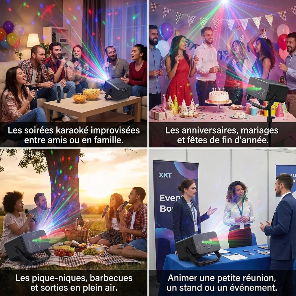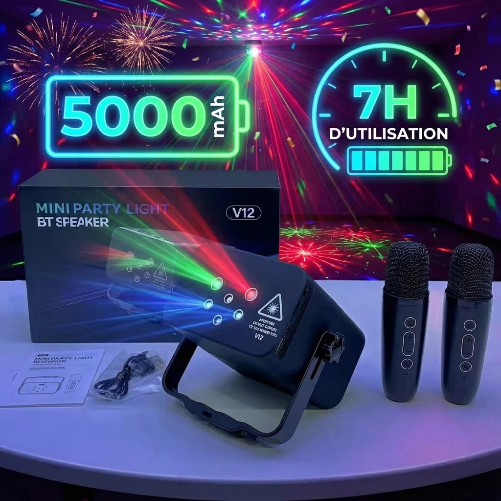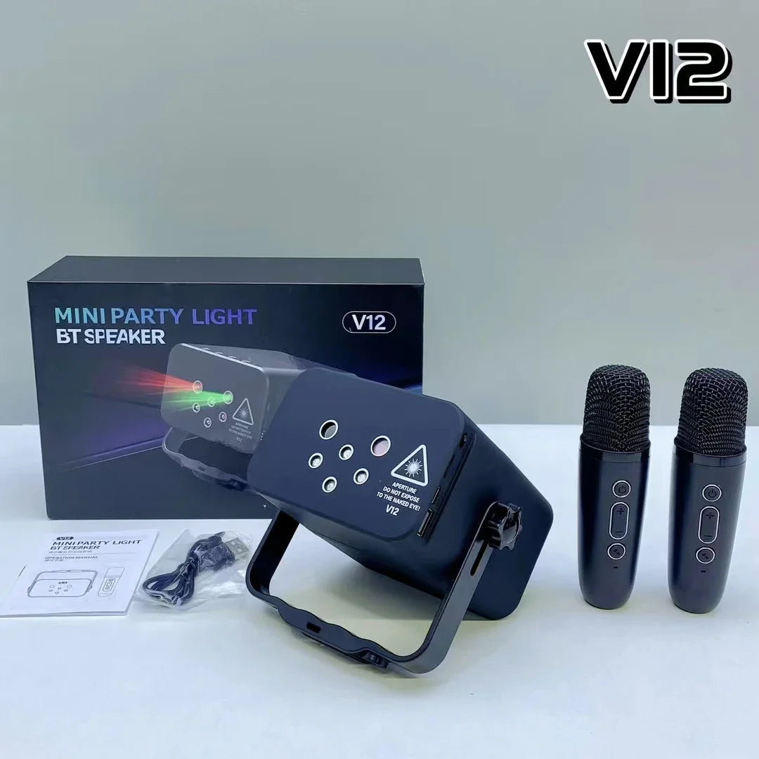 Haut-Parleur Portable XKT V12 Mini Party Light & Karaoké - Son Puissant & Lumières Laser RGB/UV avec Micros Inclus